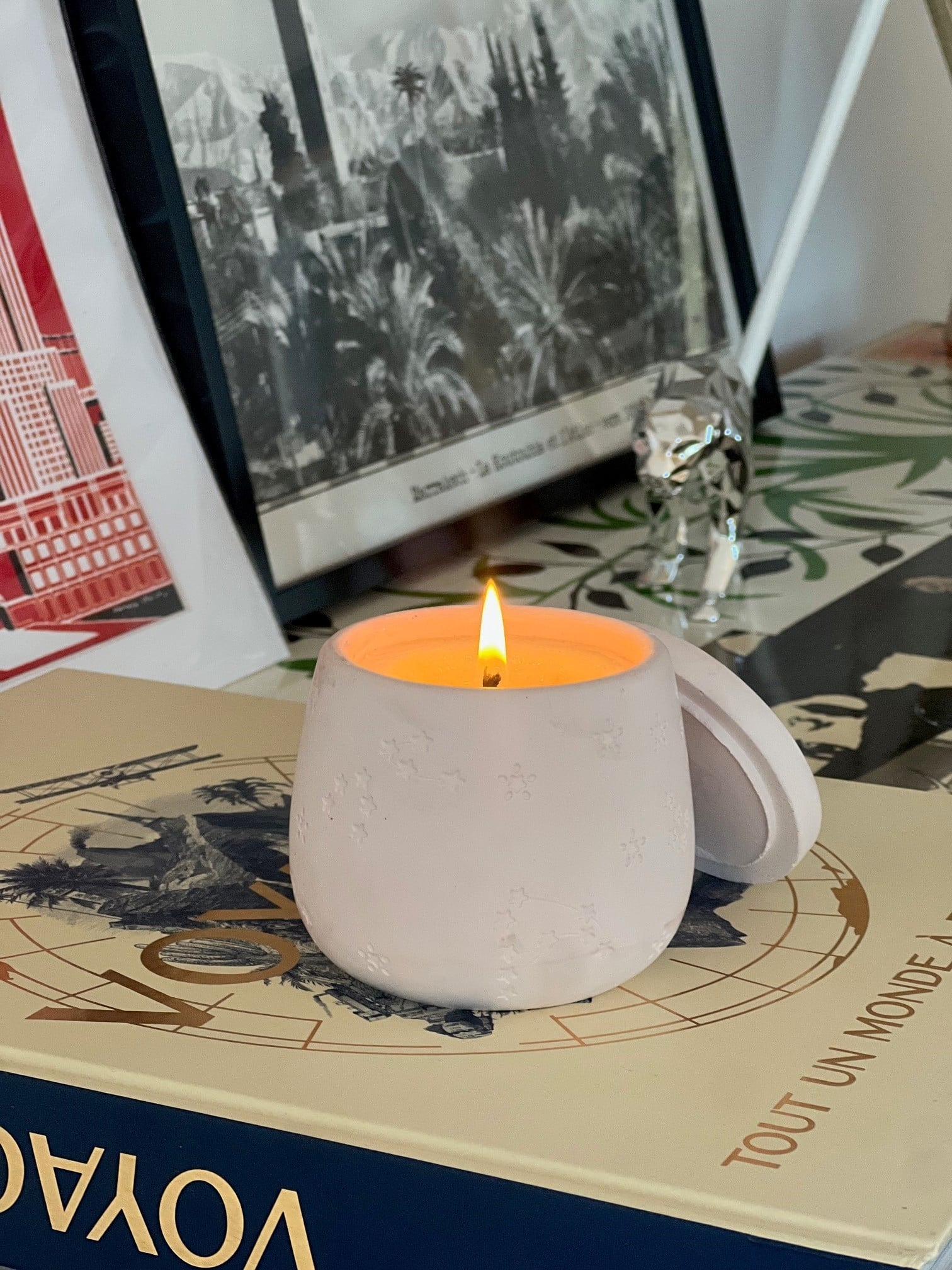 Bougie artisanale cire végétale parfumée – Contenant étoilé fait main Rose Clair